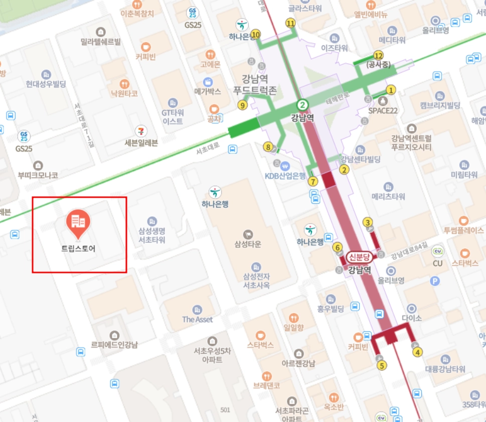 트립스토어 사무실은 강남역 8번 출구에 있는 스파크플러스 강남2호점 사무실을 이용하고 있어요!