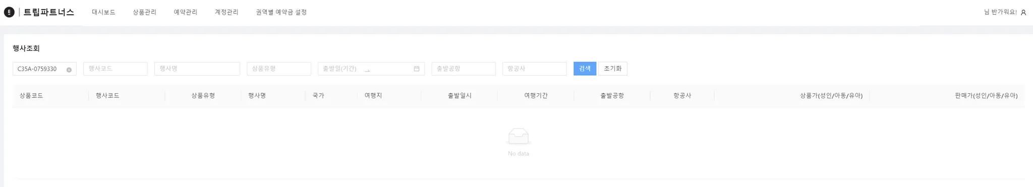 상품관리는 여행상품을 상품코드 기준으로 행사상품을 조회할 수 있어요.