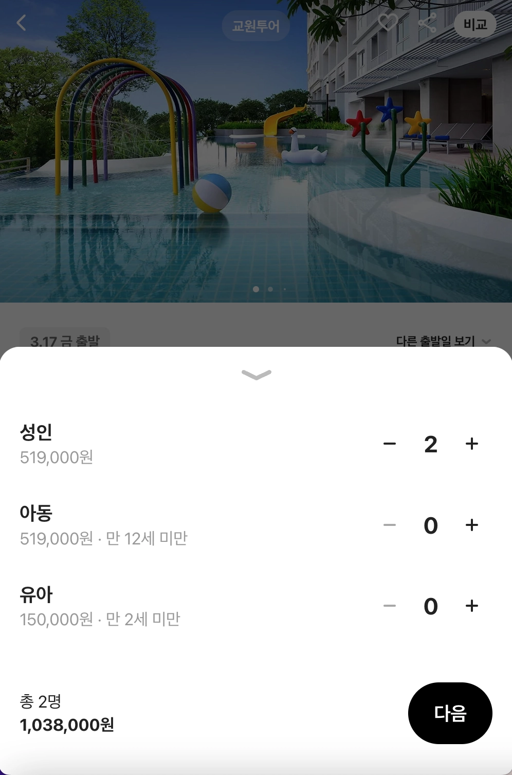 예약 1단계에서 인원을 설정해줍니다.