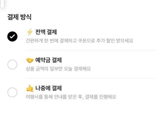 해당 결제 방식은 여행사에 따라 차이가 있을 수 있습니다.